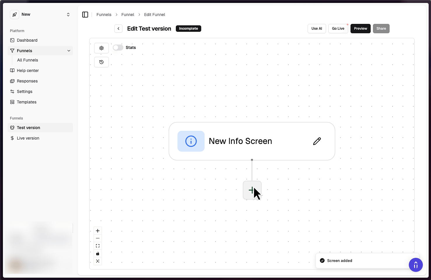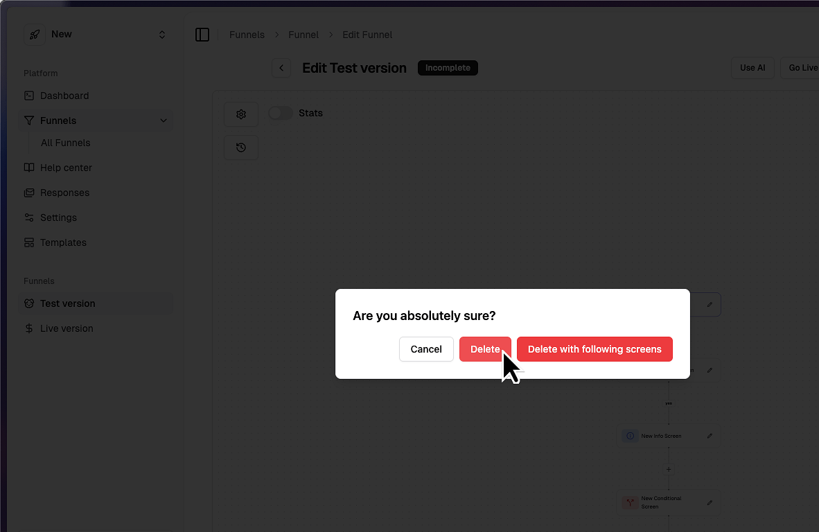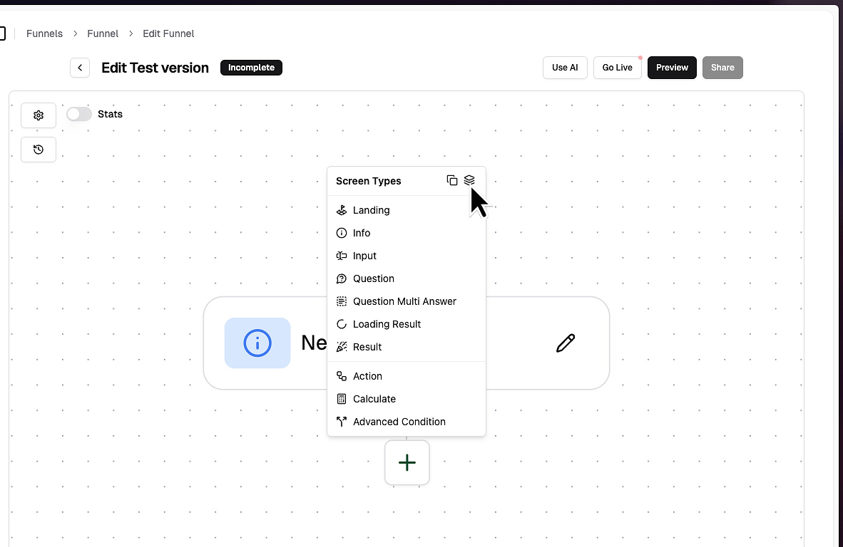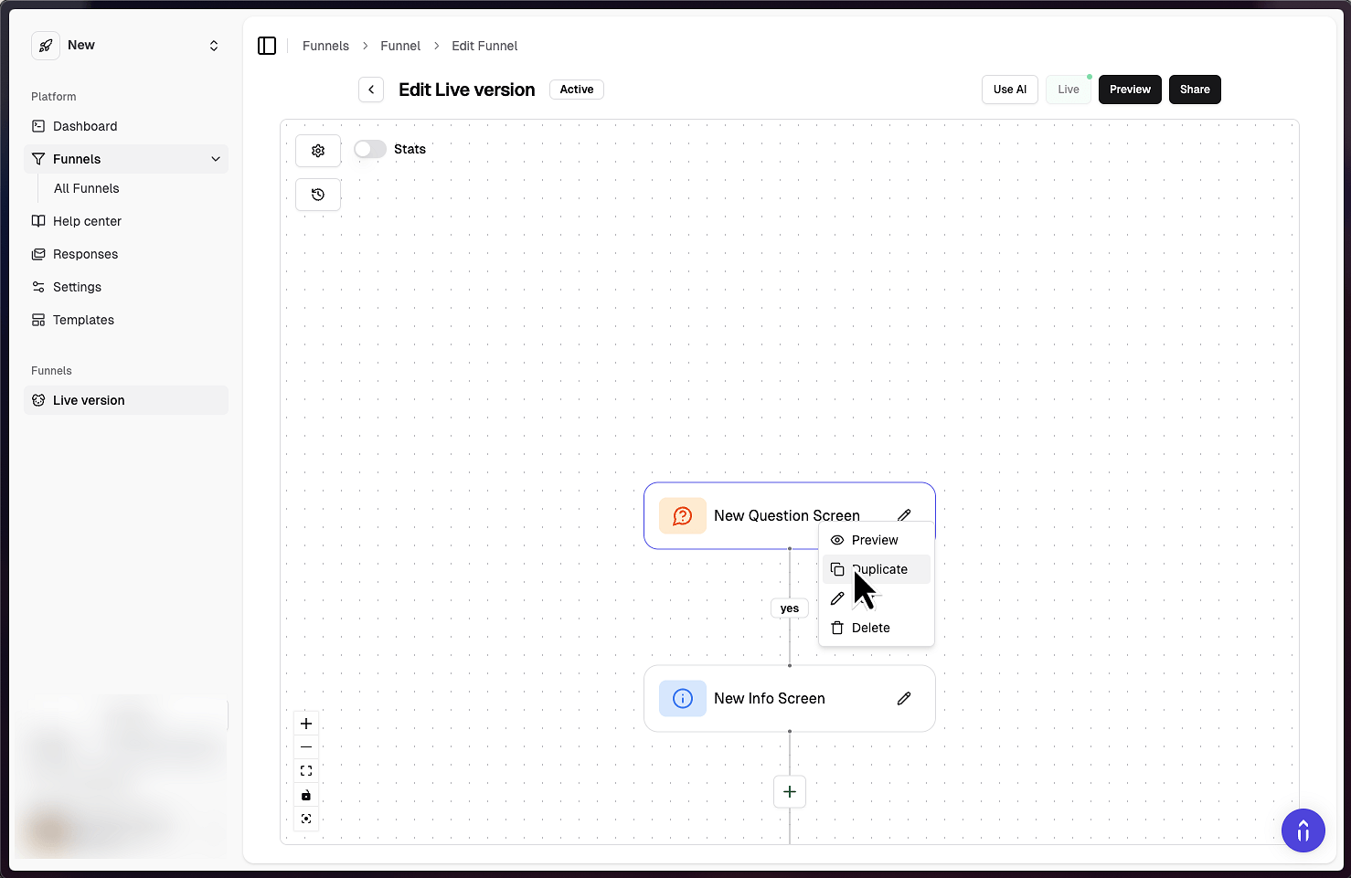 If you don't want to duplicate the entire funnel, just select any other screen.