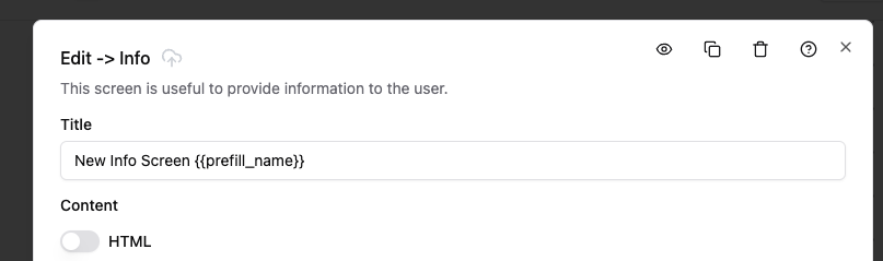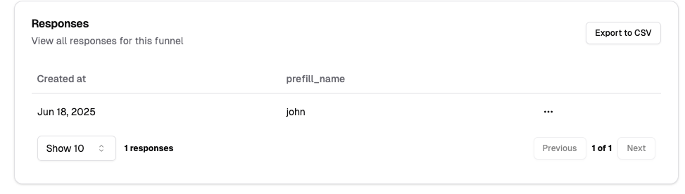 In this case we defined the variable prefill_name and it can be used in the funnel and will be saved in the responses. You can use any single word after the prefix prefill_ to create your own variables. E.g. prefill_email, prefill_userid, etc.